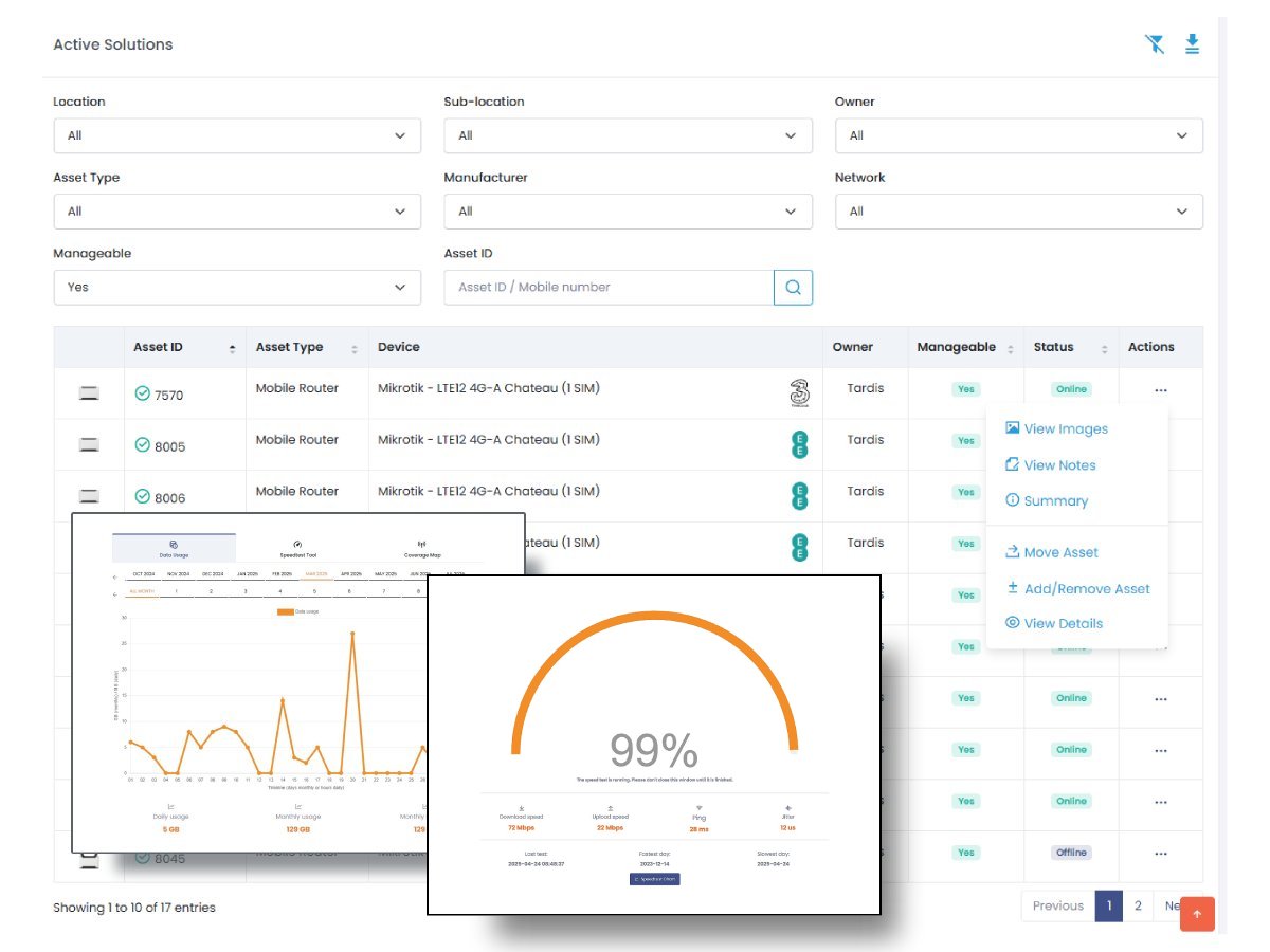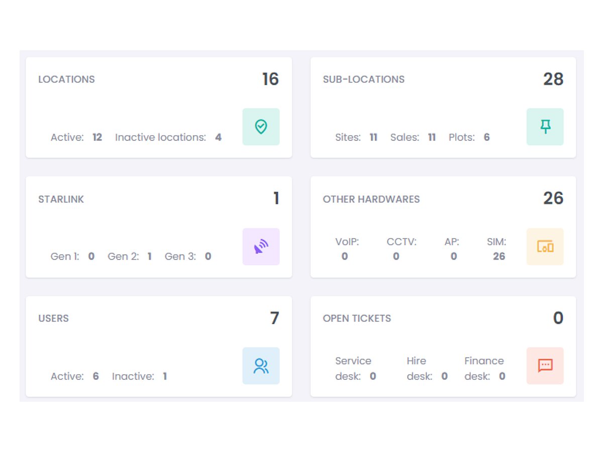 A range of statistics is available to help you monitor locations, devices, assets, and more.
